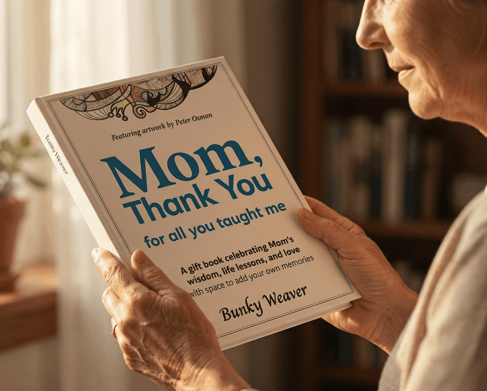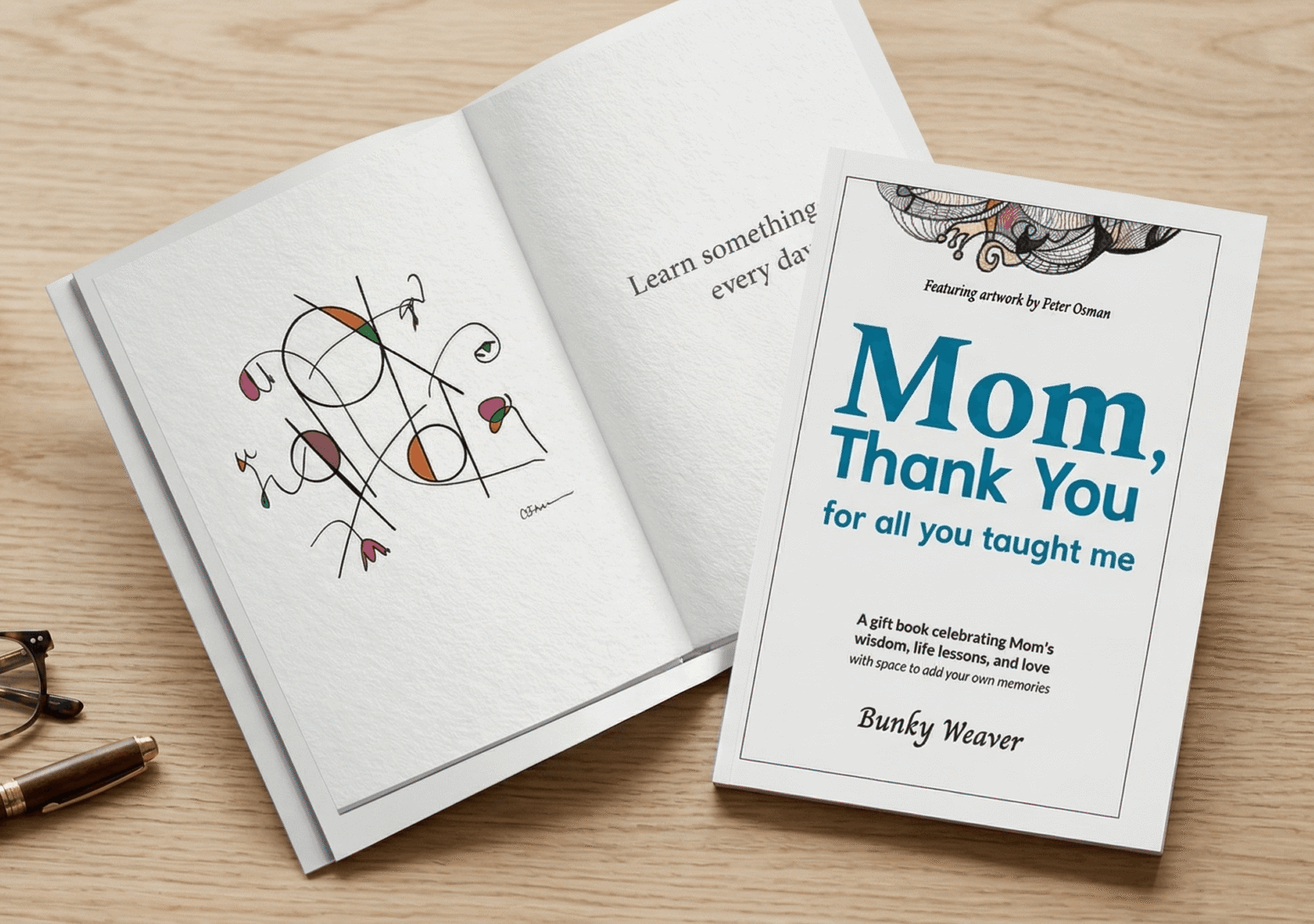 Featuring classic “Mom sayings” paired with whimsical artwork by Peter Osman, the book stands on its own as a tribute to Mom, with optional pages for recording family stories and memories.